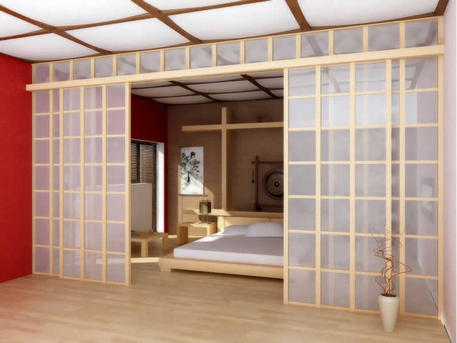 Из самого названия ясно, что эти внутренние стены одновременно служат стенами и дверями. Независимо от того, раздвигается ли перегородка как раздвижные двери или складывается как книжка, но основная функция зонирования площадей — это в первую очередь меховая подобная конструкция.