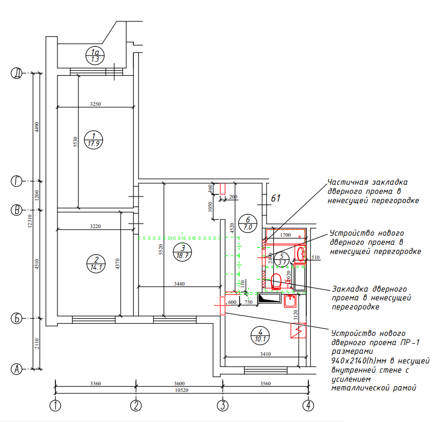 - В домах после 2007 года постройки в несущих панелях между кухней и комнатой в части квартир предусмотрена специальная ниша для выполнения дверного проёма («вафля»), которую можно демонтировать.