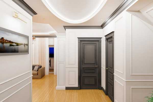 5. В больших комнатах площадь можно сократить, если применить эффектное содружество темных дверей и белого плинтуса, цвет наличников в этом случае не имеет особого значения и подбирается или под двери, или под плинтус.