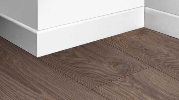 - Под цвет пола. Такой же, как и предыдущий. В данном способе плинтусы выбираются под цвет пола. Тон в тон. Это очень тяжело сделать, если напольное покрытие имеет орнамент, поэтому данный вариант не часто можно увидеть. Ещё данный способ не получится реализовать в одной комнате с использованием нескольких видов настенного покрытия.