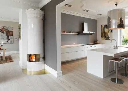 - Использование базовых цветов. Очень неоднозначное решение, но в некоторых случаях единственный способ создать достойный интерьер. К базовым цветам в интерьере можно отнести белый и светлые оттенки серого. Они идеально подходят в любой интерьер, даже если таких цветов в нем нет. Но стоит понимать, что с белыми плинтусам будет сильнее выделяться стык между полом и стеной, из-за чего комната будет выглядеть меньше.
