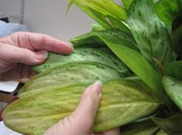Появление грибковой болезни на листиках. Указывает на размножение микробов и бактерий. Растение необходимо промыть под протоком воды и обработать фунгицидами. Отлично подойдет «Фундазол». 1 грамм порошка разводят в 1 литре воды. Объемы могут варьироваться при сохранении рецепта.