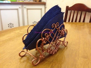 Далее надо взять пары коротких проволок и так же скрутить их, чтобы получились толстые «веревки». Ими соединяются получившиеся ранее конструкции снизу, чтобы короткие проволоки служили одновременно и соединяющим элементом, и подставкой для салфеток.