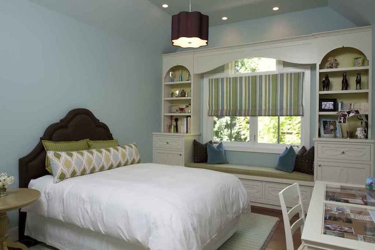 Эркер в спальне – это уютный уголок, очень удобный для прослушивания музыки, чтения книг и даже работы за ноутбуком. Если вы выберете встроенную скамью, было бы разумно добавить ящики для хранения, где вы можете хранить личные вещи, подушки или постельные принадлежности.