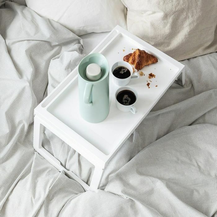 Столик для завтрака в постель может выполнять не только свое прямое предназначение, являясь подносом для блюд, но и служить дополнительным целям. Например, стать удобной подставкой под ноутбук или выполнять функцию рабочего столика, за которым, разместившись на ложе, вполне можно писать мемуары, накидывать эскизы или заниматься рукоделием.