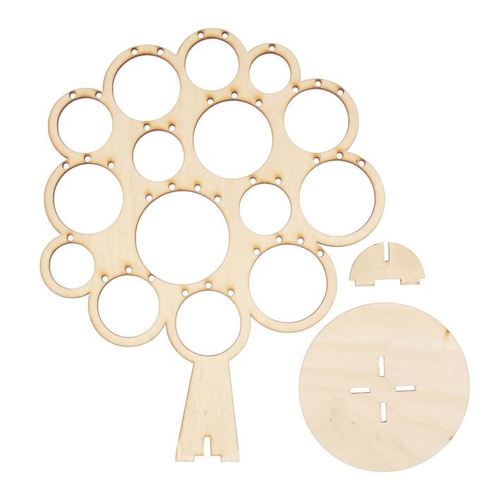 Наконец, подставку-дерево можно вырезать из картона. Только нужен не обычной картон (он не выдержит вес украшений), а более прочный: например, для этой цели подойдет старая обувная коробка. Вырежьте на листе два макета дерева с небольшими прорезями для крепления бижутерии — как показано здесь.