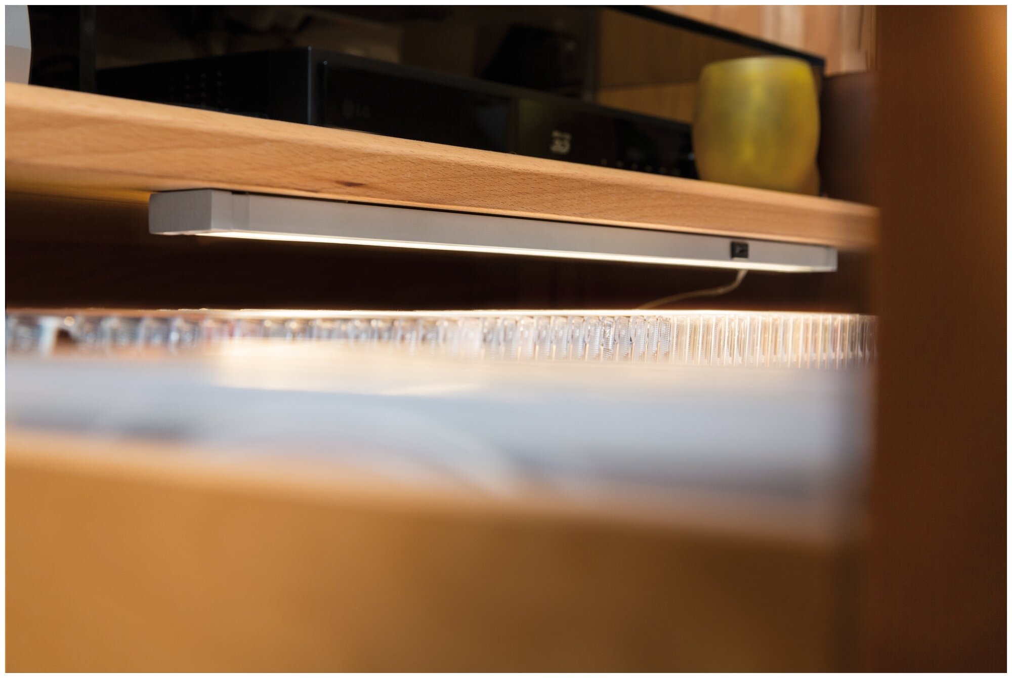 Особенно полезной бывает внутри глубоких шкафов, поскольку обычно при отсутствии подсветки в них приходится заглядывать с фонариком или мобильным телефоном. Удобно, что свет внутри всегда включается автоматически при открывании дверец или выдвигании ящиков.