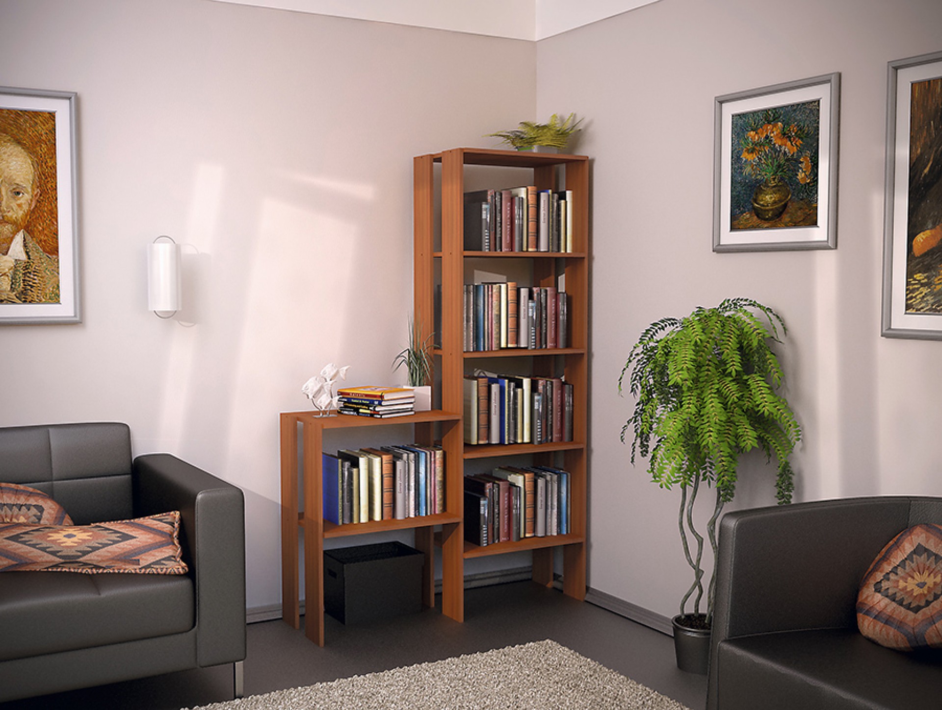 Угловые полки позволяют значительно сэкономить пространство за счёт избавления от необходимости использования большого количества мебели, что добавляет комнате или кабинету функциональную практичность.