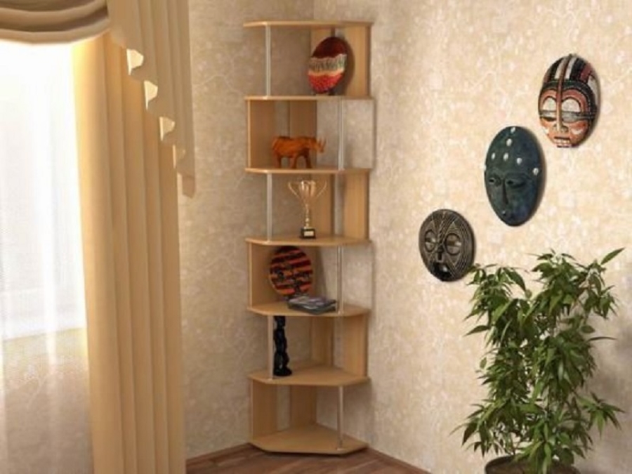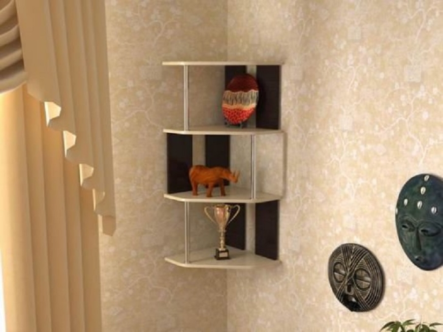 Отличным вариантом оптимизации использования пространства в помещении является установка угловых полок.