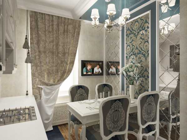 - На кухне лучше не размещать зеркальную поверхность там, где расположена зона готовки. Лучше всего такая стена будет смотреться над обеденным столом. При этом желательно отделать отражающим материалом лишь верхнюю ее часть. В этом случае удасться увеличить пространство помещения, не снизив его практичность. Также можно встретить интерьеры с кухонным фартуком из зеркальной плитки. Такое оформление выглядит очень красиво, однако на такой отделке будут постоянно оставаться разводы и капли воды и жира, которые нужно будет чистить.