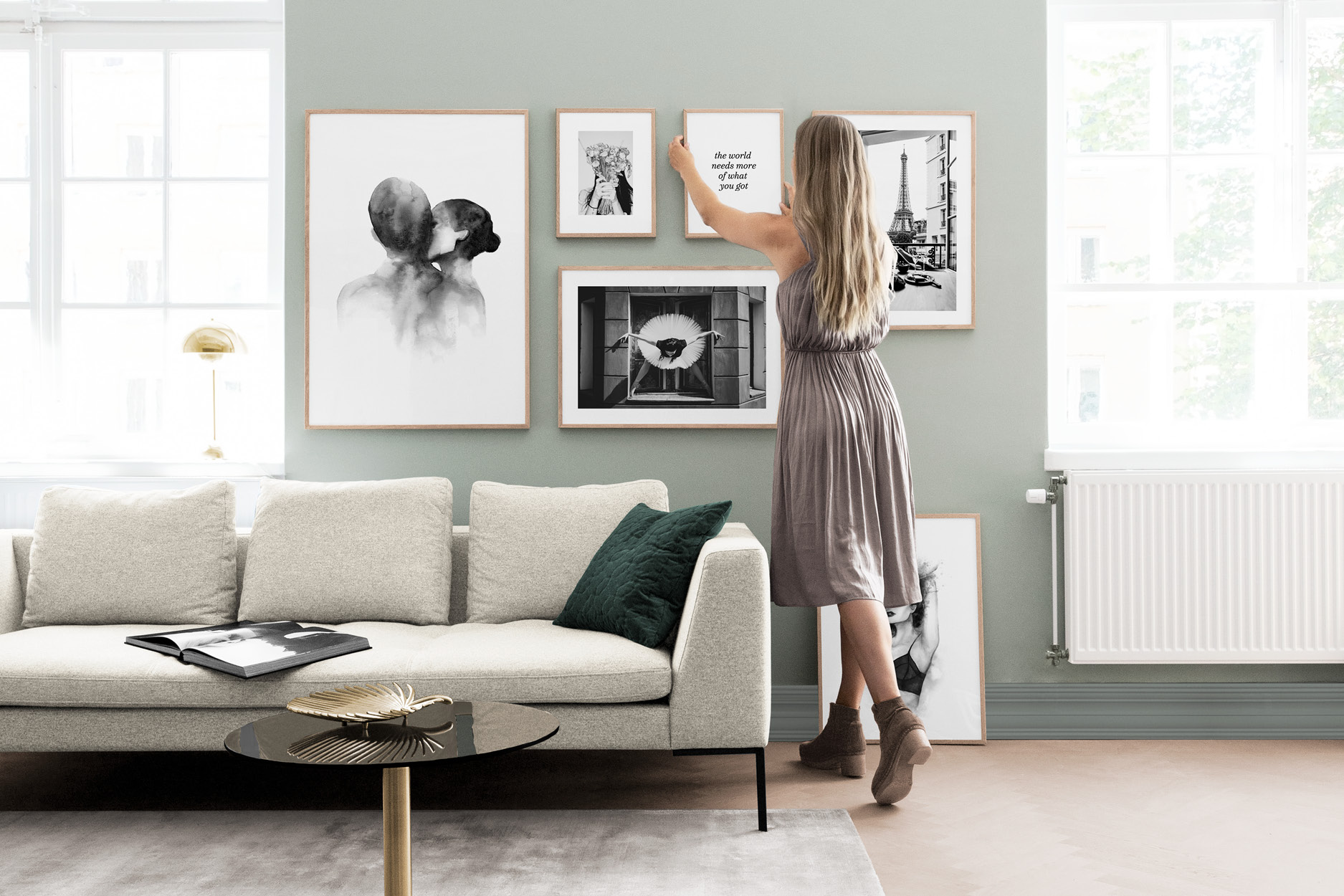 Вы можете не ограничиваться одним постером, а составить целую асимметричную композицию из разных изображений, либо развесить их парами.