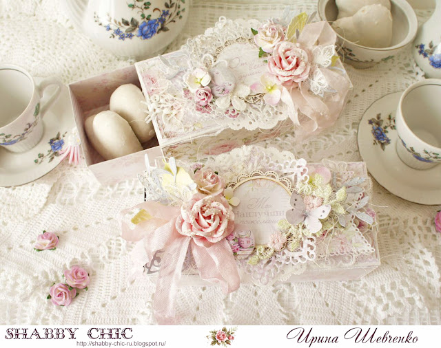 Создать эффект шебби помогает специальная техника, просто перекрасив шкатулки в белый цвет или нарисовав цветочные картинки, шика не добиться.