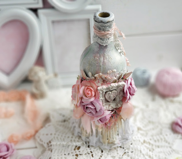 Так и возникла идея быстрой композиции:) Горшочек был задекупажен найденной в доме картинкой, потерт, задекорирован кружевом, букет сухих роз нещадно обрезан — о чудо, место на балконе освободилось:) Вот так и получилась композиция в шебби шик стиле — практически из ничего и очень быстро:) Может, кому из вас эта идея пригодится.