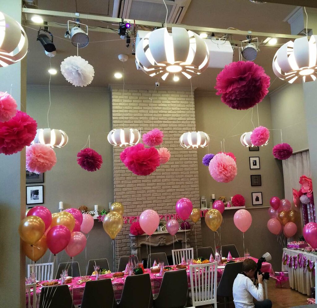 Беспроигрышным вариантом на праздник девушки станет оформление воздушными шарами. Этот декор один из самых популярных и востребованных в наши дни. Особенно эффектно смотрятся шарики с гелием, которые словно парят высоко над потолком.
