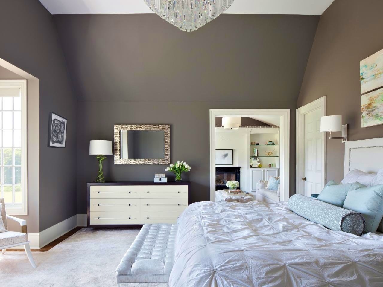 Коричневая краска для спальни, дизайн