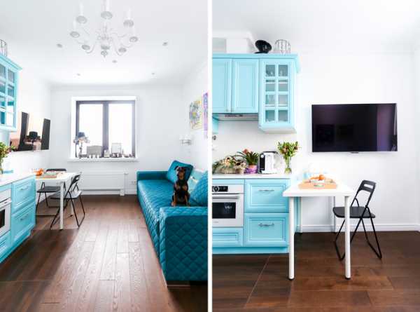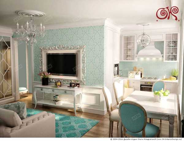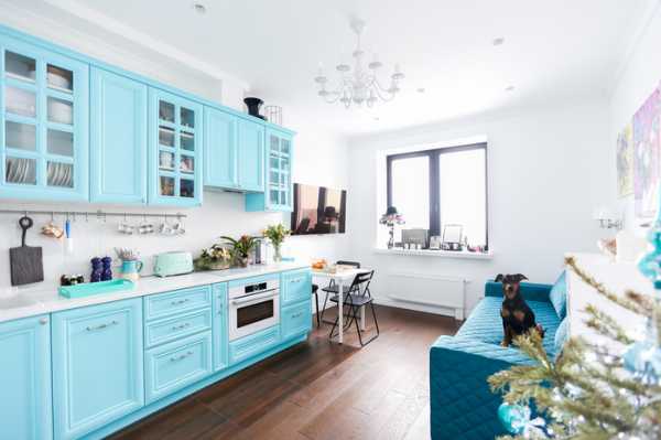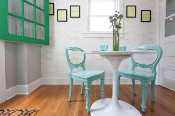 Для комнаты в стиле прованс подойдет светло-бирюзовый. В отделке используются натуральные материалы, например окрашенные деревянные полы. В кухне гарнитур может быть из дерева, окрашенного в мятный цвет.