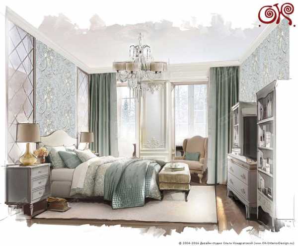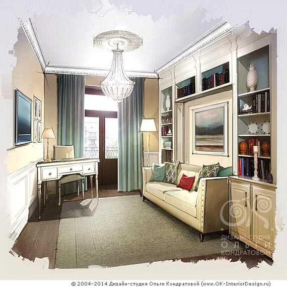 На рисунке: Дизайн кабинета в стиле ампир с бирюзовыми акцентами