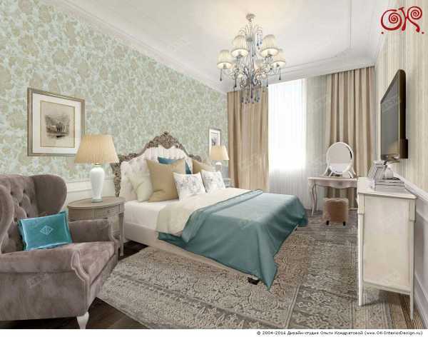 Для интерьера в классическом стиле подойдут матовые обои спокойного бирюзового цвета. Мебель имеет изящные формы. В комнате со светлой отделкой можно использовать мебель насыщенного бирюзового оттенка, она будет акцентировать на себе внимание. Например бирюзовый диван или кровать.