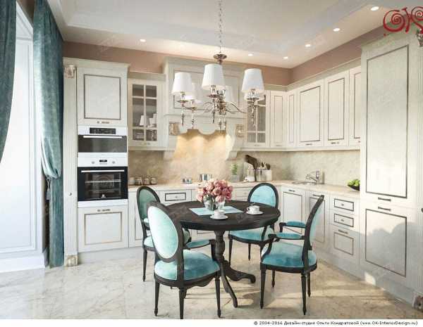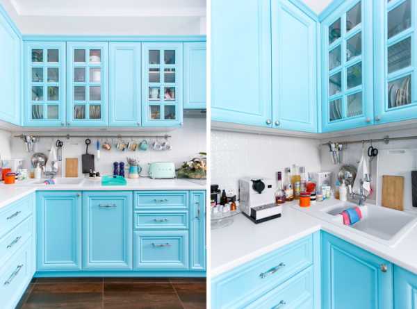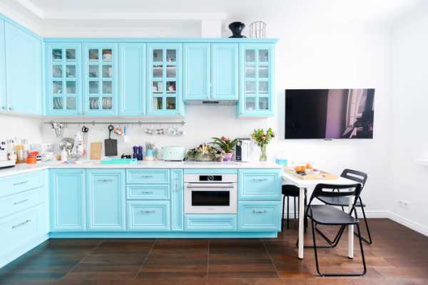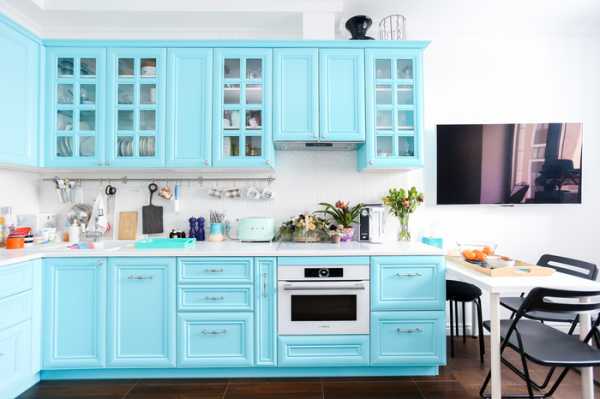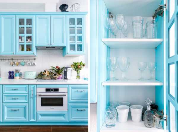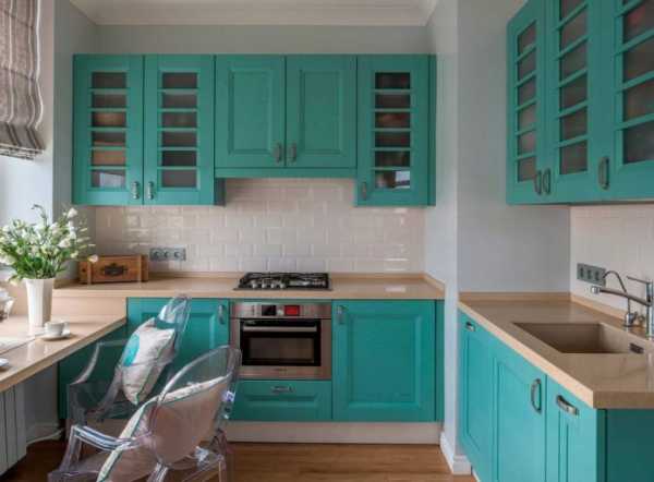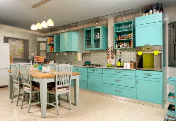 Все они, в основном, подразумевают игру на контрасте, что особенно выигрышно именно с бирюзовым. Глянцевые поверхности шкафов, выполненные именно в бирюзе, станут дополнением для светлых стен и наоборот.