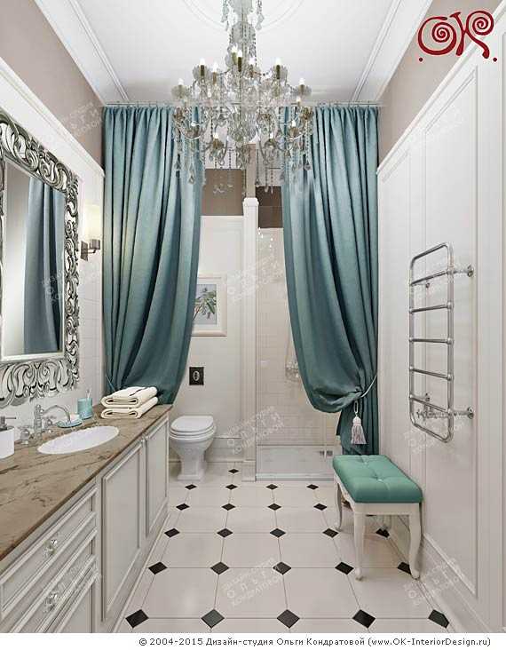Нежно-бирюзовый цвет в ванне гармонично смотрится в классическом, современном и морском стиле. Полезные предметы с морской тематикой удачно дополняют дизайн. Учитывая, что в стандартных городских квартирах ванные комнаты небольших размеров, бирюзовый цвет лучше комбинировать со светлыми оттенками.