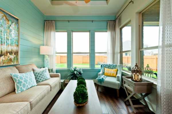 Интересный цвет имеющий множество оттенков украсят любой интерьер. Светлая гамма освежит комнату и будет ассоциироваться с морским бризом. Грязно-бирюзовые краски смотрятся стильно, но не вычурно. Ниже представлены фото примеры использования бирюзового цвета в комнатах различного функционального назначения.