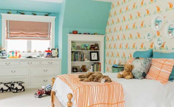 Оформить детскую бирюзовым цветом станет одним из лучших интерьерных решений. В сочетании с голубым или лиловым оттенком можно создать яркую комнату. Фотообои не только эффектно смотрятся, они поспособствуют развитию ребенка и могут подчеркнуть тематику комнаты.