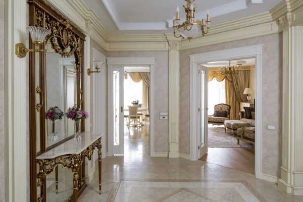Шикарный вариант цветового решения для интерьера в помпезном стиле. Именно так в прошлом украшались дворцы и залы для балов и приемов. Только глядя на оформление, сразу же понимаешь, что оказываешься в дорогом помещении.