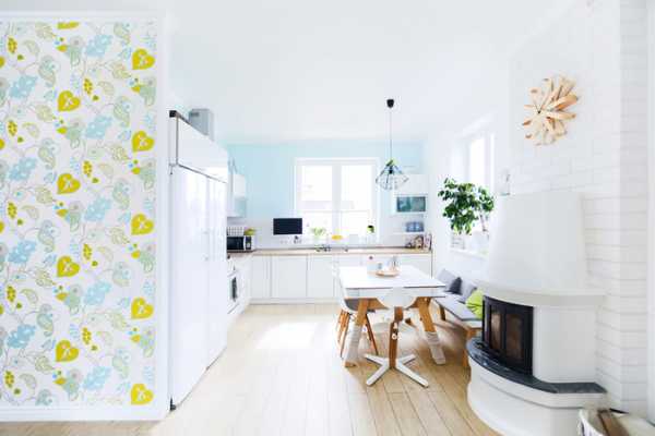 | Белый | Комбинация ассоциируется с морским бризом. Интерьер получается светлым и свежим. |