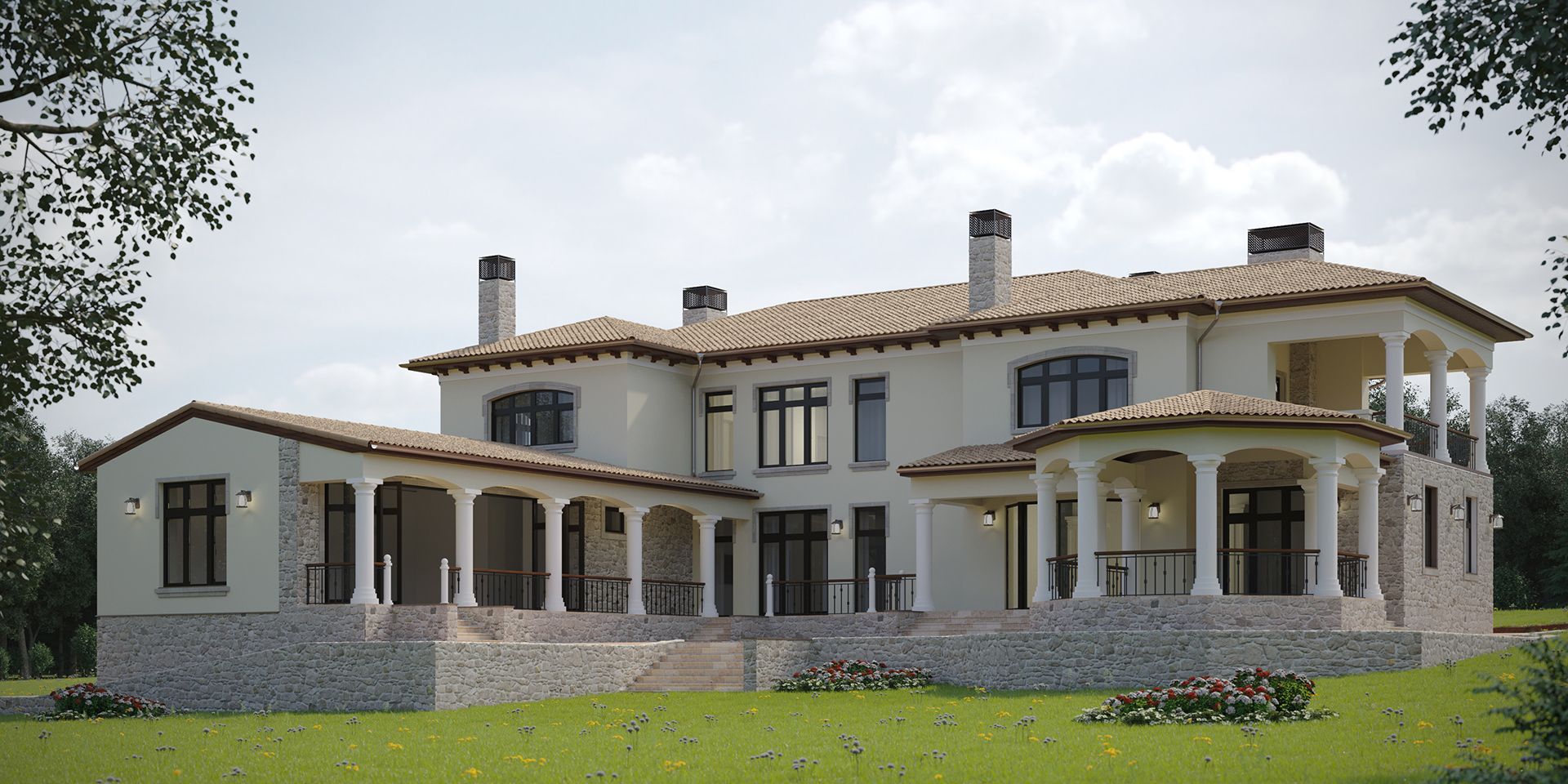 Строительство частных домов в средиземноморском стиле, дизайн проект коттеджа