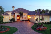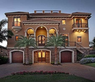 Испанский колониальный стиль – это стиль роскошных голливудских, техасских и многих других вилл. Обычно это дом в 3-6 окон на главном парадном фасаде, с гаражом или даже двумя, с характерными признаками средиземноморского традиционного стиля, но более точно выверенной цветовой гаммой и дизайном. В палисаднике может быть мощеная плиткой площадка для автомобиля, фонтанчик, пальма, красивое крыльцо с полукруглыми ступенями.