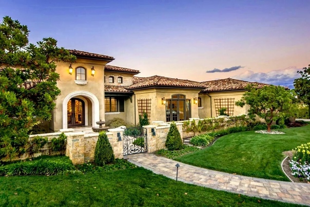 Дом в средиземноморском стиле — это южное обаяние, охристые оттенки, кованые детали, натуральная рыжая череп на крыше, башенки и арочные окна с черными рамами, а также пальмы в палисаднике и красивые мощеные патио и крытые галереи.