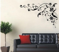 Рисунок на стене, нанесённый с помощью обычной краски, изображающий птиц и ветку дерева.