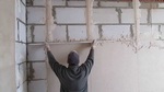 - Подготовка стены. Данный этап является самым простым, необходимо избавиться от старых обоев, иных отделочных материалов (например, штукатурки, если она плохого качества) на стене. Поштукатурить стены заново.
