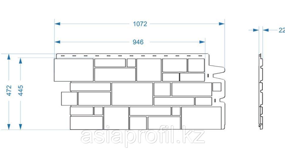 Размер камня: 24,5 х 6 см — 14 штТолщина камня: 1 — 1,5 см Выход камня: 0,21 м2 Размер формы: 53 х 5..