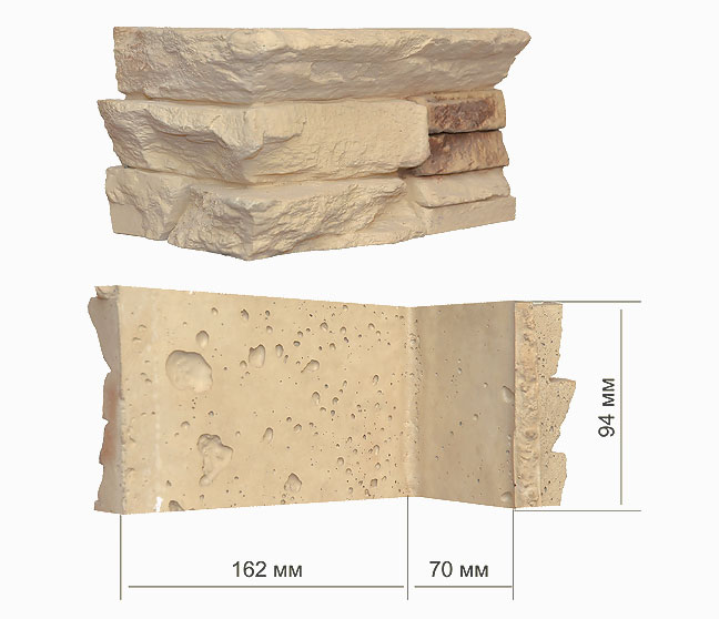 Размер камня: 24+12 х 6,5 см — 4 штТолщина камня: 1 — 1,5 смВыход камня: 0,26 пог.мРазмер формы: 27+..