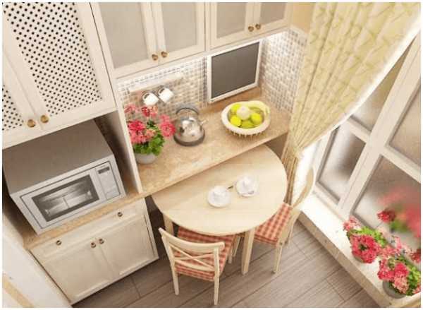 Проблему небольшой кухни можно решить, оборудовав ее раскладным столом-книжкой. В сложенном виде это обычная модель маленького размера, а в разобранном, его длина может быть увеличена в два раза. В одном из вариантов его используют как рабочий стол для приготовления еды. Когда на кухне собираются пообедать только члены семьи, то размеров стола вполне хватает. А вот к приходу гостей его можно разложить на всю длину.