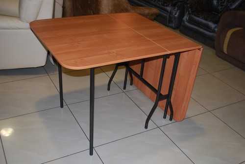 Многие производители предлагают раскладные модели кухонных столов, что значительно облегчает задачу экономии пространства в маленьком помещении. Столы-трансформеры могут иметь разный механизм трансформации и различные базовые размеры, от компактных журнальных до полноценных обеденных, которые с помощью раскладного механизма «приращивают» 2-4 дополнительных места. При покупке стола-трансформера важно предусмотреть для него место на кухне в максимальном, разложенном размере.