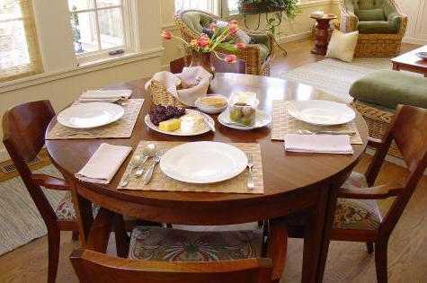Пожалуй, именно круглый стол является тем самым символом семейных застолий и домашнего уюта. Поэтому выбор именно этой формы предпочтителен для столовой. Круглый стол хорош и тем, что за ним с комфортом может поместиться большее количество человек, чем за квадратным того же размера.