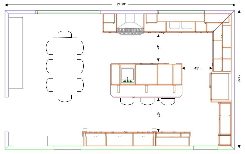 Вот мои настоящие планы на кухонный остров, когда я его проектировал! У нас было место, поэтому мы выбрали 42-дюймовую дорожку со всех сторон.