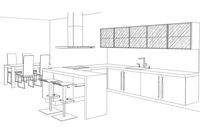 Я из опыта вывела, что самый удобный остров – это 184*90 см. Те три напольных шкафа по 60 см, в которые можно встроить технику такую как морозильник, винный шкаф, систему хранения.