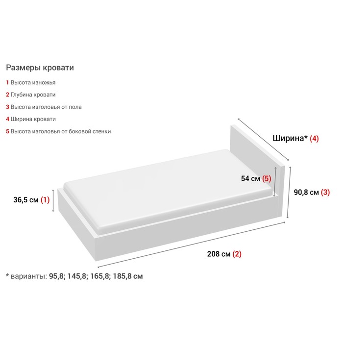 Схема стандартной односпальной кровати с размерами