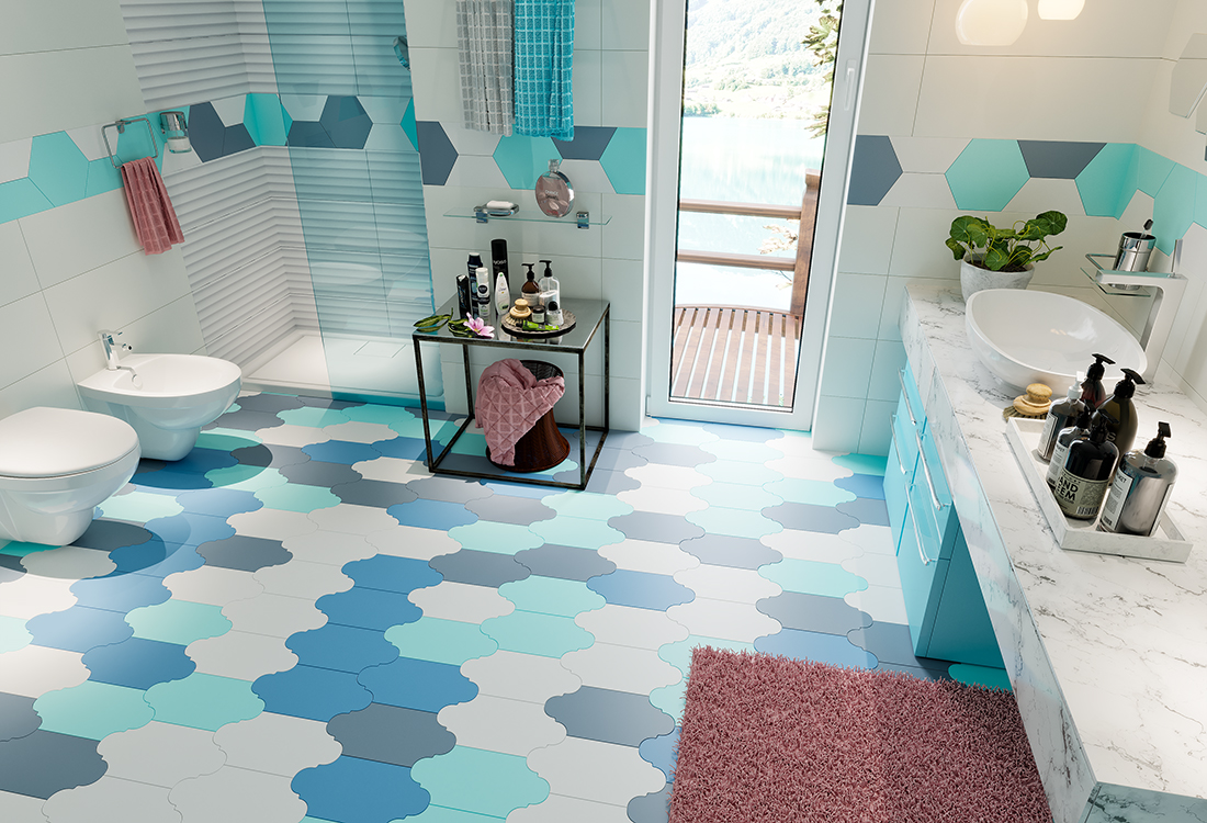или мозаичной, как голубая мозаика неправильной формы L’antic Colonial Hexcube Blue