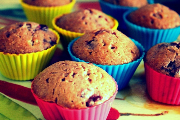 Проверяем духовку и, если она разогрелась до нужной температуры, ставим туда на средний стеллаж противень с формами, наполненными тестом. Выпекаем маффины в течение 20 минут, за которые они дойдут до полной готовности, дольше передерживать их в духовом шкафу не стоит, будут слишком сухими.