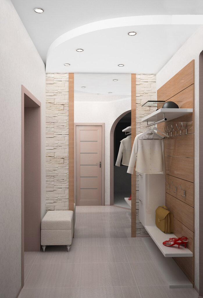 В первую очередь, проводя ремонт, необходимо отказаться от материалов, которые могут визуально уменьшить площадь ещё больше и испортить дизайн маленькой прихожей, например, рельефный камень, панели, которые закрепляются на специальных брусках или на каркасах.