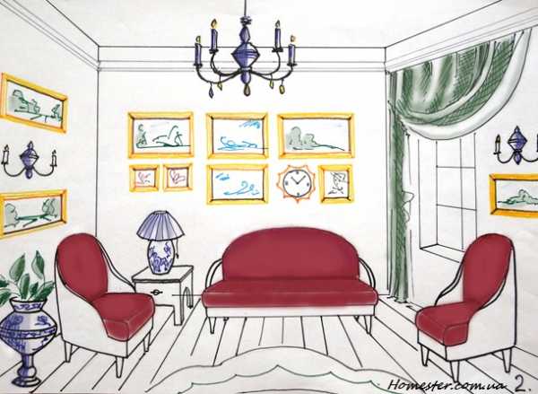 Как это сделать. Постарайтесь представить свою комнату, начиная с потолка, как бы разделенной на три разных по дизайну уровня. Первый Вы можете оформить, например, панелями, для второго использовать картины, а третий – оставить, как есть. Мебельная фурнитура размещается на уровне третьего, нижнего сектора.