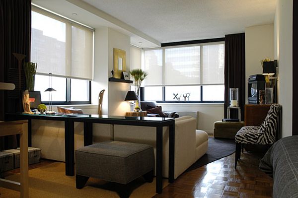 Однокомнатная квартира в деревенском стиле (фото через Лонни) Однокомнатная квартира гостиная (через Enlightenme)В то время как проживание в одной комнате — это самая распространенная особенность студийных квартир, во многих студиях предусмотрены перегородки некоторых типов, такие как полустены или умно расположенная встроенная полка, чтобы обеспечить некоторую конфиденциальность и помочь определить пространство.