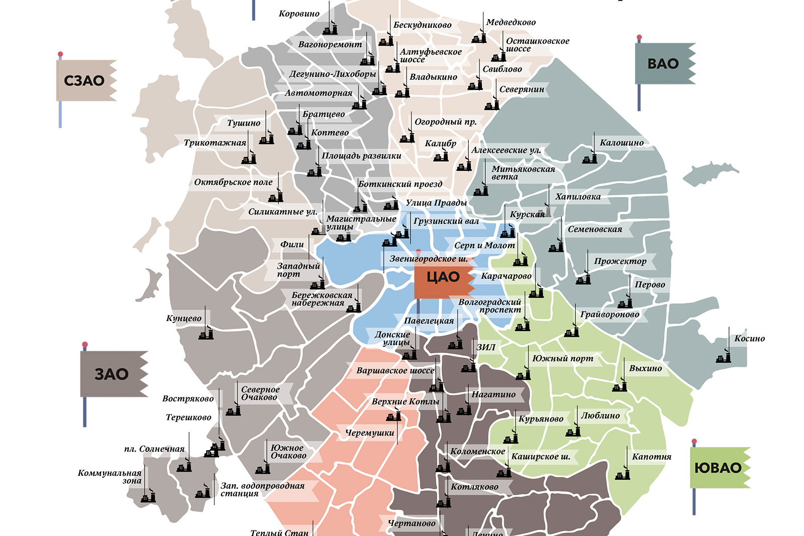 Важно! Исключение сделали Зеленоградский, Троицкий и Новомосковский районы. На этих территориях строительные площадки будут расположены на границе административных округов.
