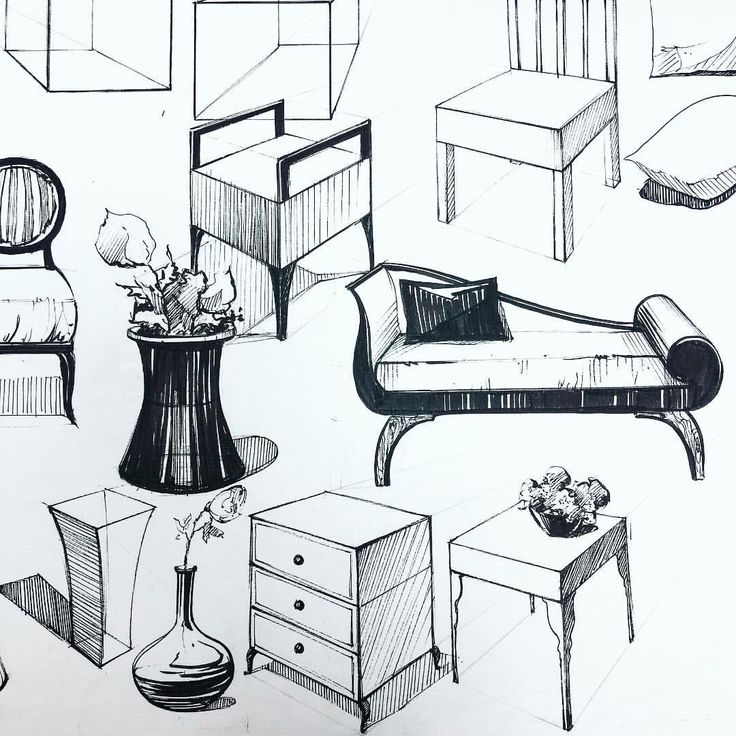 После того, как я создал изометрический куб, который определяет периметр предмета мебели, который я рисую, я заполняю три вида, перенося масштабированные измерения из чертежа с тремя видами, стараясь сориентировать линии параллельно базовым линиям 30 °. .Возможно, вам будет полезно подложить изометрическую сетку под пергамент в качестве помощи для набросков некоторых деталей. Когда вы закончите заполнять детали, сотрите выносные линии, используемые для поднятия конструкции, и все готово.