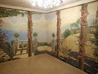 - Классика. Идеальна роспись на стене в виде пейзажа, цветочных деталей, репродукций классических полотен, орнаменты.