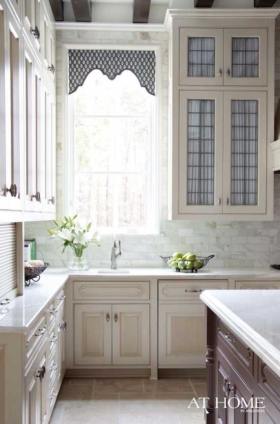 - Ошибается тот, кто считает, что на кухню неуместно вешать ламбрекен. Напротив, выполненный из ситца в сочетании с короткими тюлевыми занавесками, он отлично подчеркнет интерьер в стиле кантри и дополнит кафе-шторы.